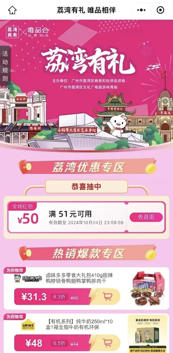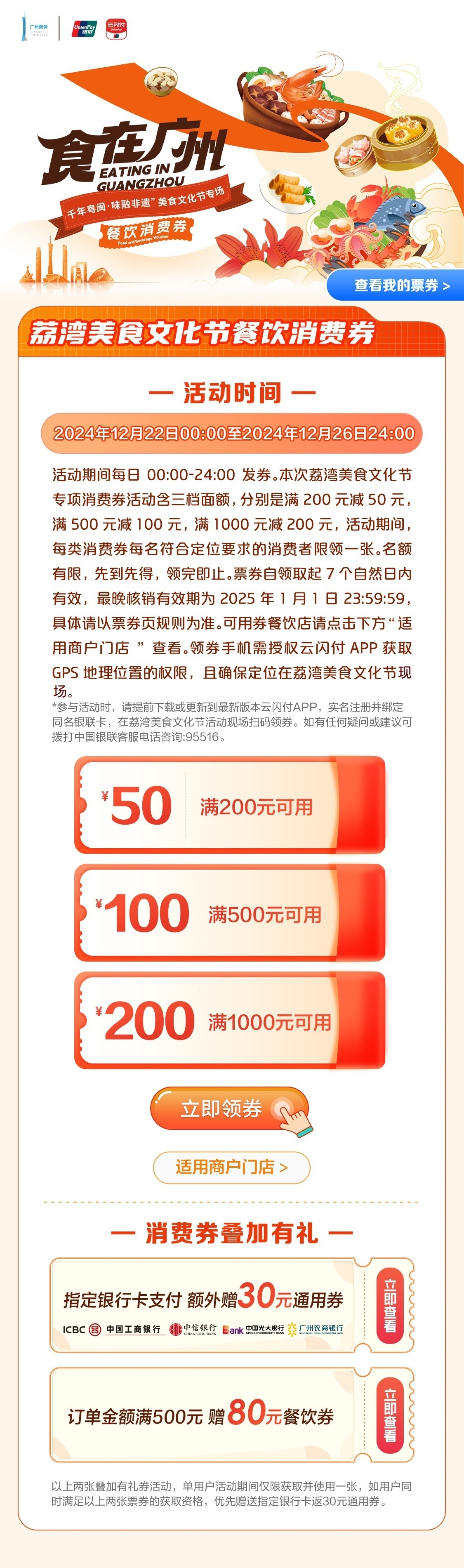 为了让您在这个好意思食节中尽情享受,咱们将在行为现场开展“食在广州”餐饮消耗券荔湾区专场行为、派发唯品会满减惊喜消耗券,快来现场抢券吧!
